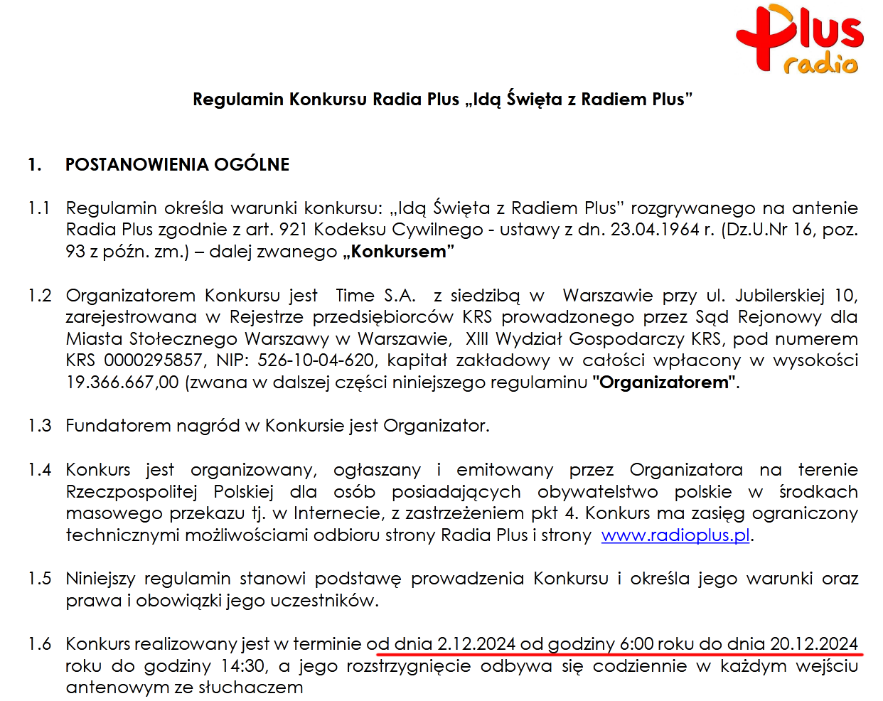 Konkurs "Idą Święta z Radiem Plus"