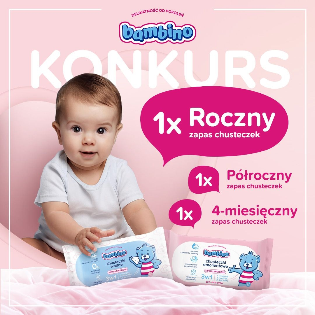 Wygraj roczny zapas chusteczek wodnych i emolientowych Bambino!