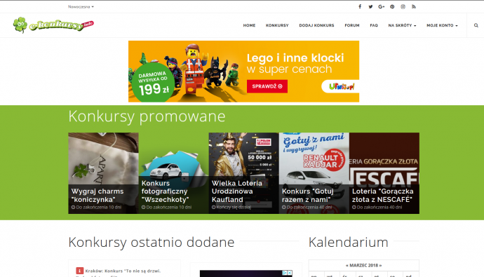 22.03.2018 10:55:56konkursy są rozrzucone na 2 kolumny, wg mnie bardziej czytelna była jedna kolumna, gdzie konkursy wyraźnie informowały o kolejności ich zamieszczania. Dzięki temu wiedziałam, gdzie danego dnia zakończyłam ich przeglądanie i spokojnie rozpoczynałam następne. Tutaj widzę chaos.