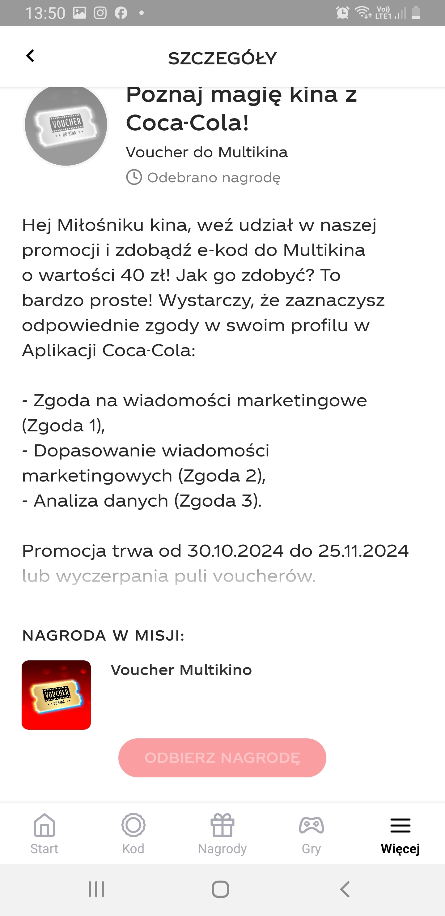 Czy komus sie udalo pobrac bilet? Mam komunikat ze podana nagroda nie istnieje. Zaznaczylam wszystkie zgody