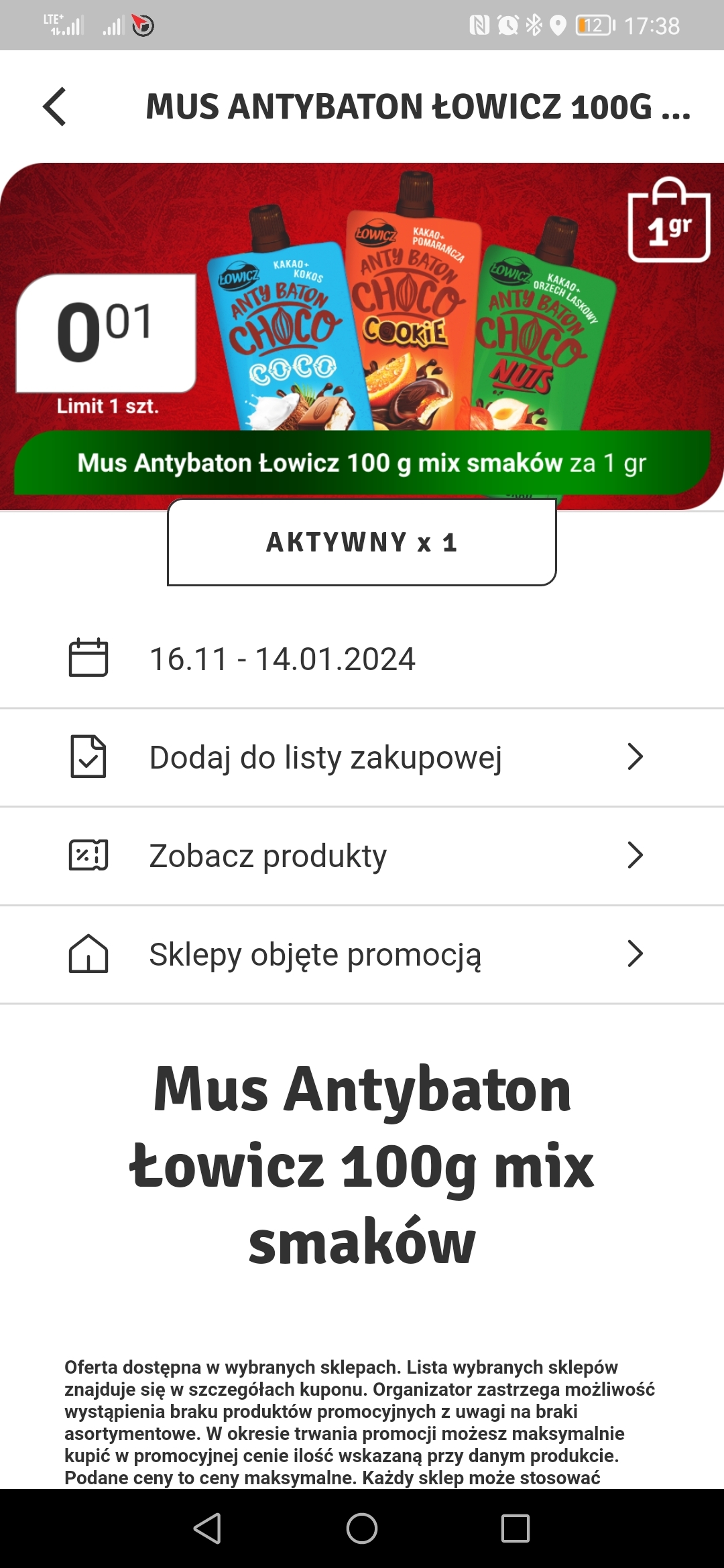 Antybaton w stokrotce za 1 gr z moją kartą. Oddam za darmo. Do 14.01