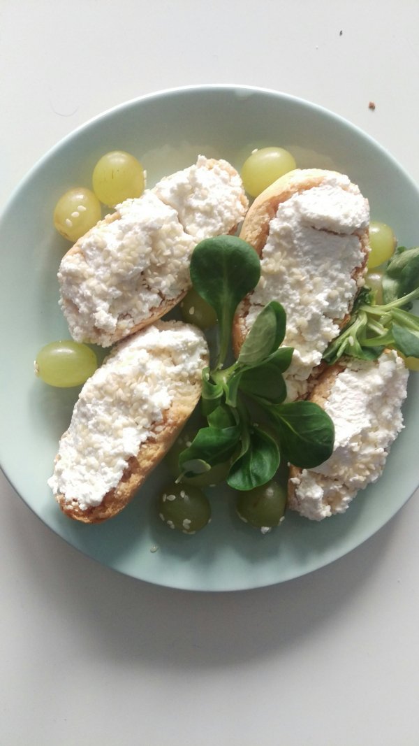 Na śniadanie dzisiaj były 4 jakby babeczki z kaszy jaglanej z musem malinowym i wiórkami kokosowymi, przyozdobione listkami mięty. Córka stwierdziła, że poprzednie śniadania bardziej jej smakowały ale i tak wszystko pochłonęła