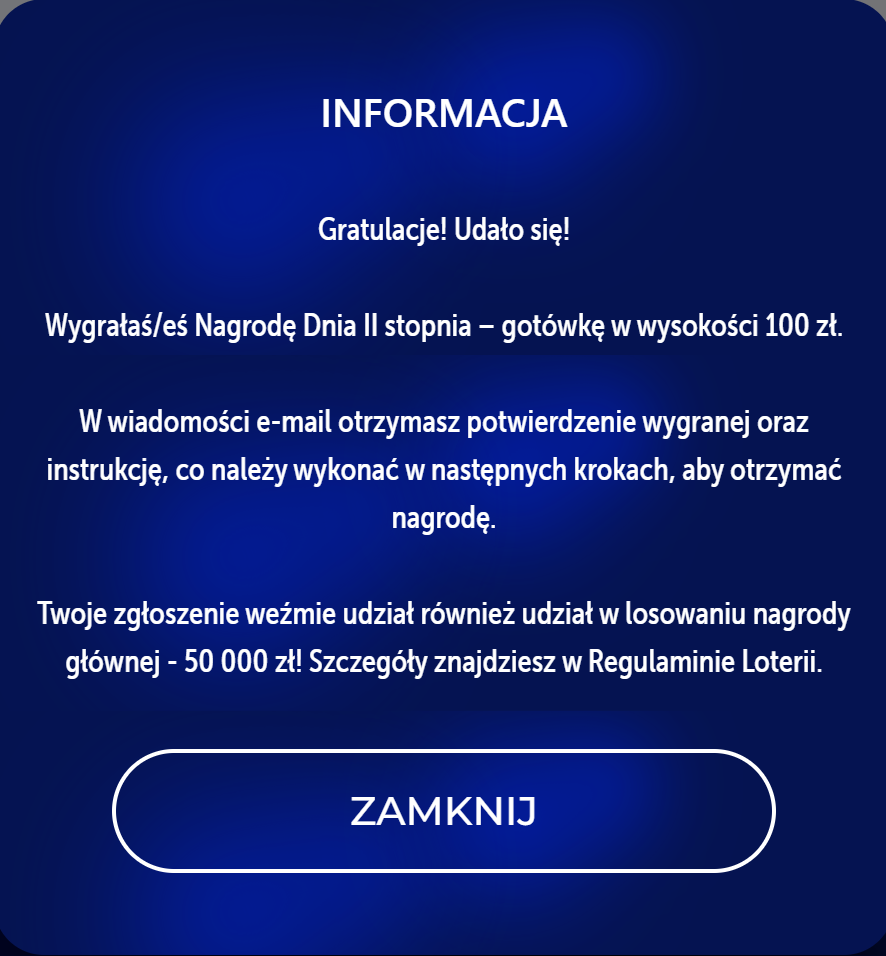 2 natychmiastowe nagrody w odstępie kilku minut...