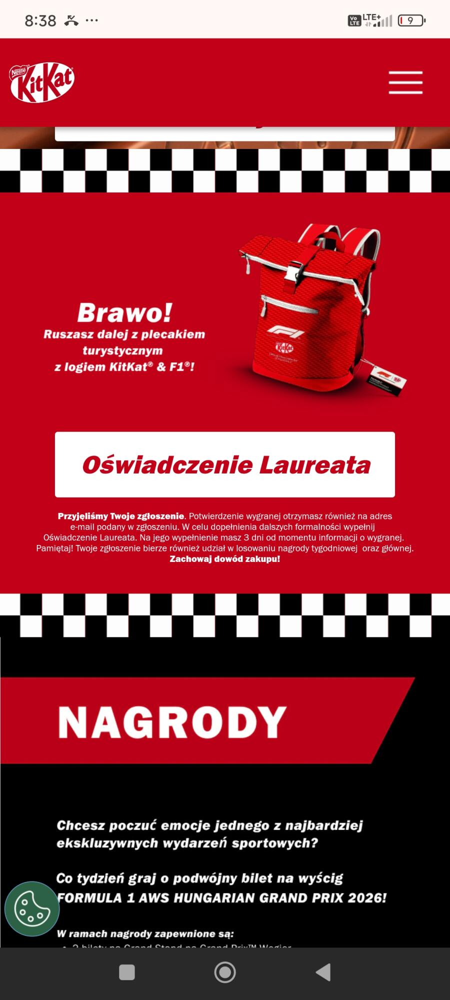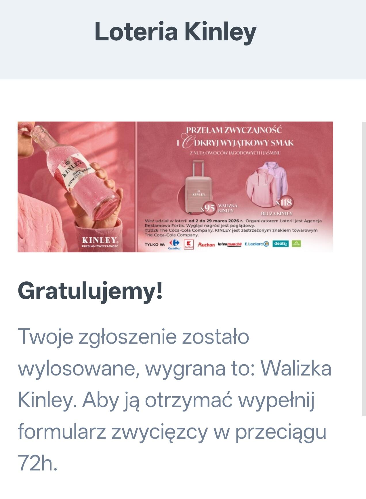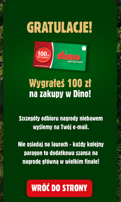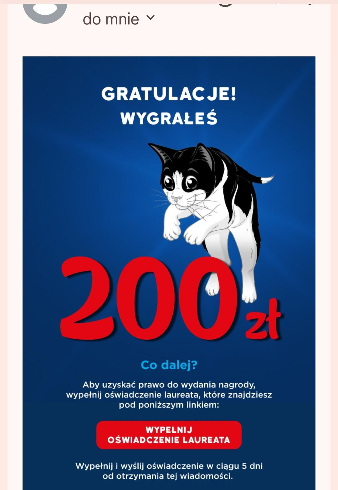 Mejl zawierający gratulacje & nagrodę.