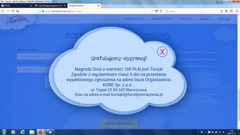 Z tego konkursu https://www.e-kon...18.html#.W3xNsGg9e2c , dostalam pw kilka minut po 18.