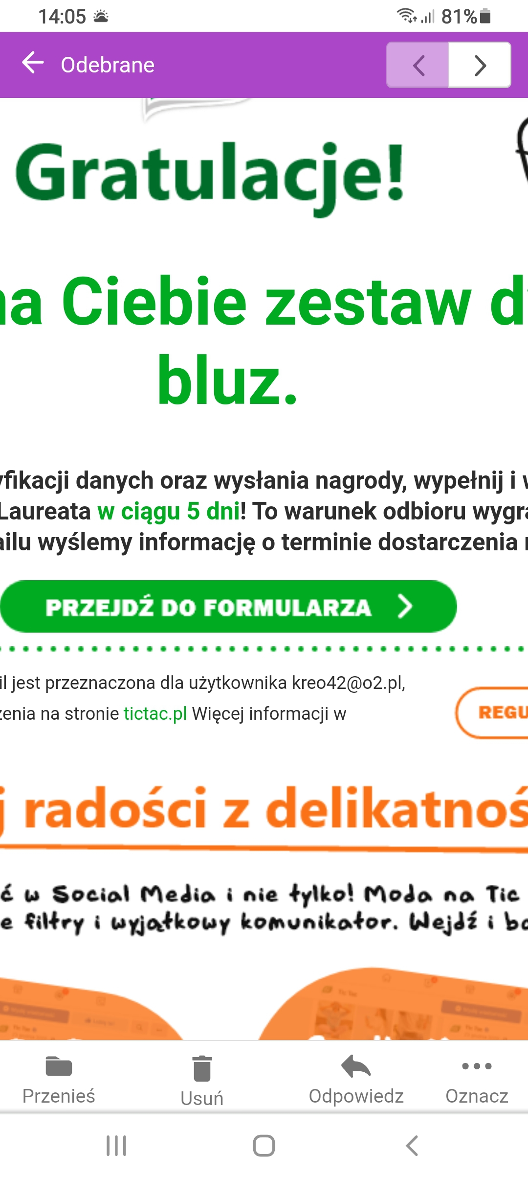 Bluza z loterii "Wkręć się w inny wymiar imprezy" o wartości 400zł..pewnie szyta grubymi nićmi