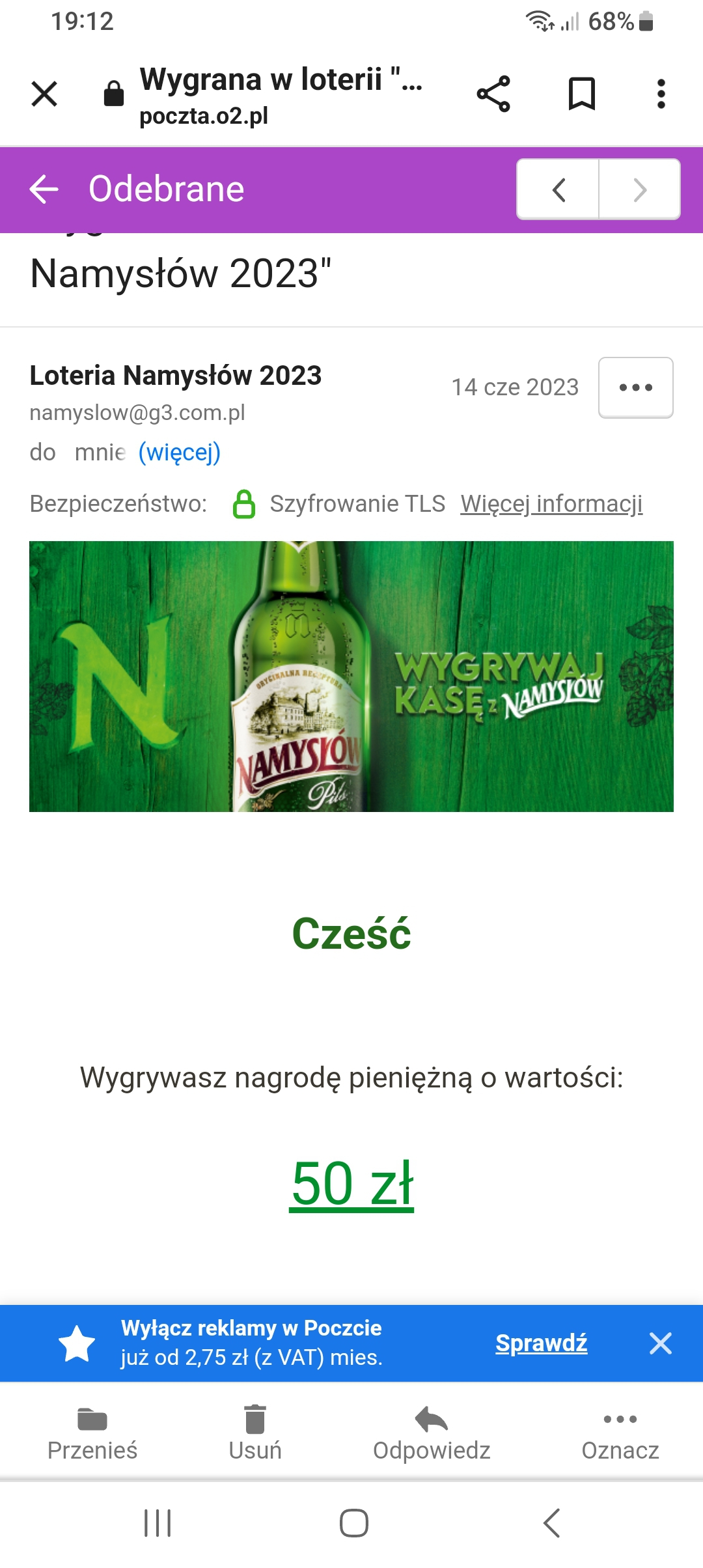 Żabka i Kinley Napisali że przypominają że muszę odpisać z danymi do nich, Nawet nie wiedziałam że wygrałam później przejrzałam maila i 12 czerwca był mail w spamie