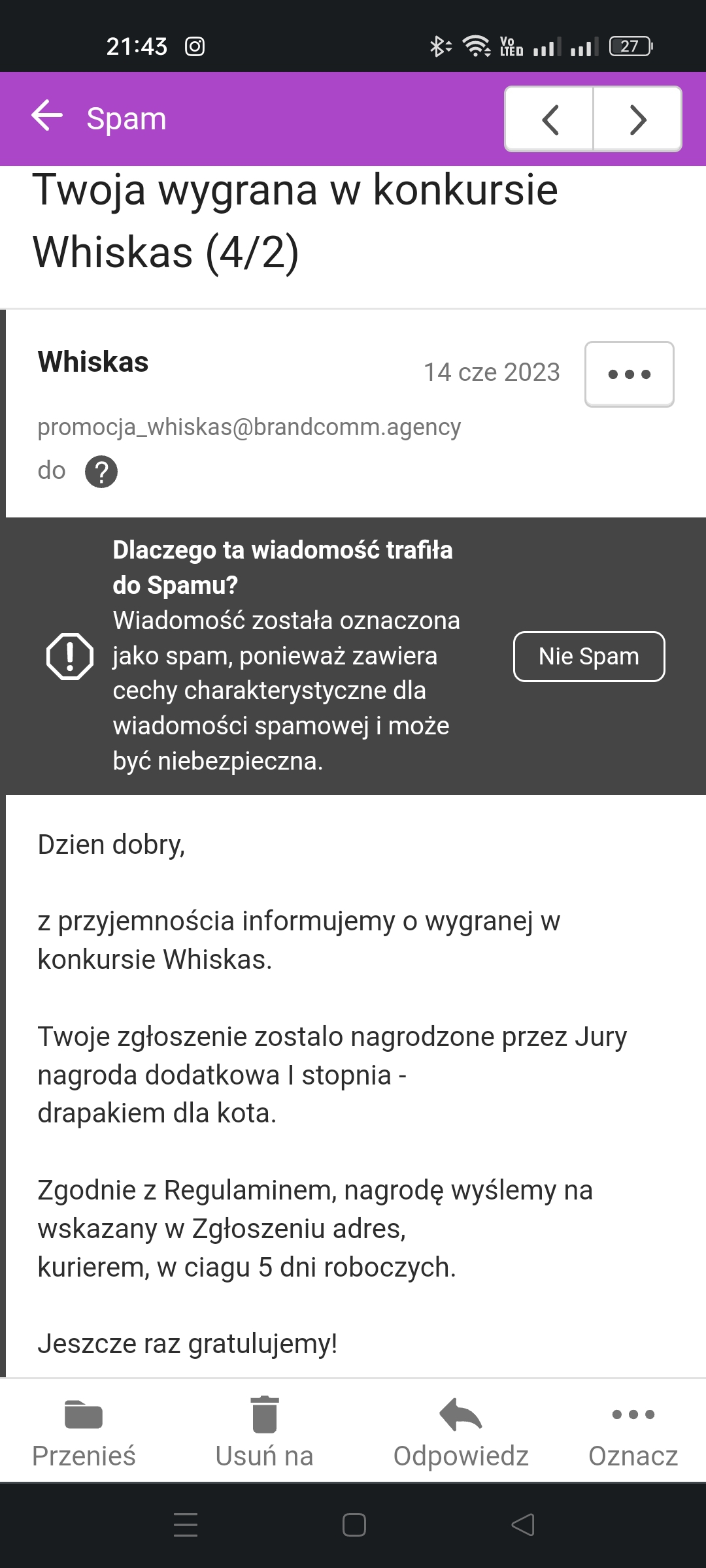 Znalezione w spamie podczas czyszczenia poczty 😳