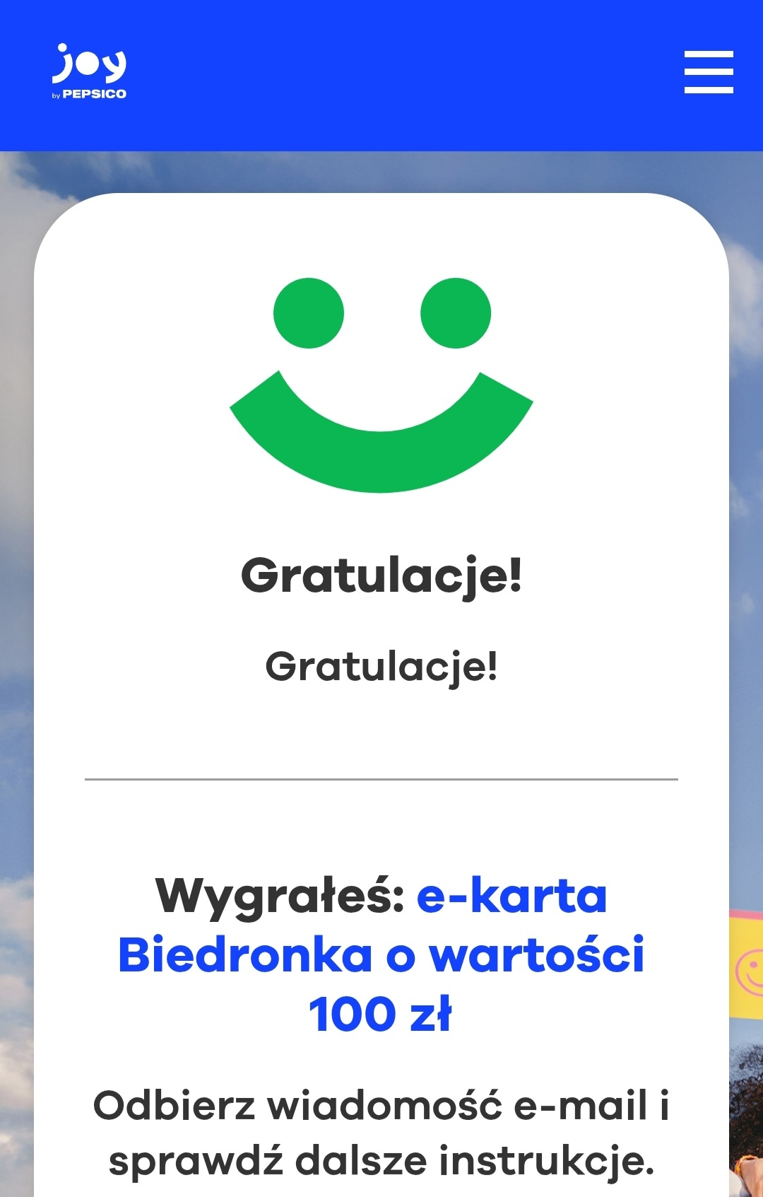 Gratulujemy!50 zł jest Twoje!Wygrywasz 50 zł