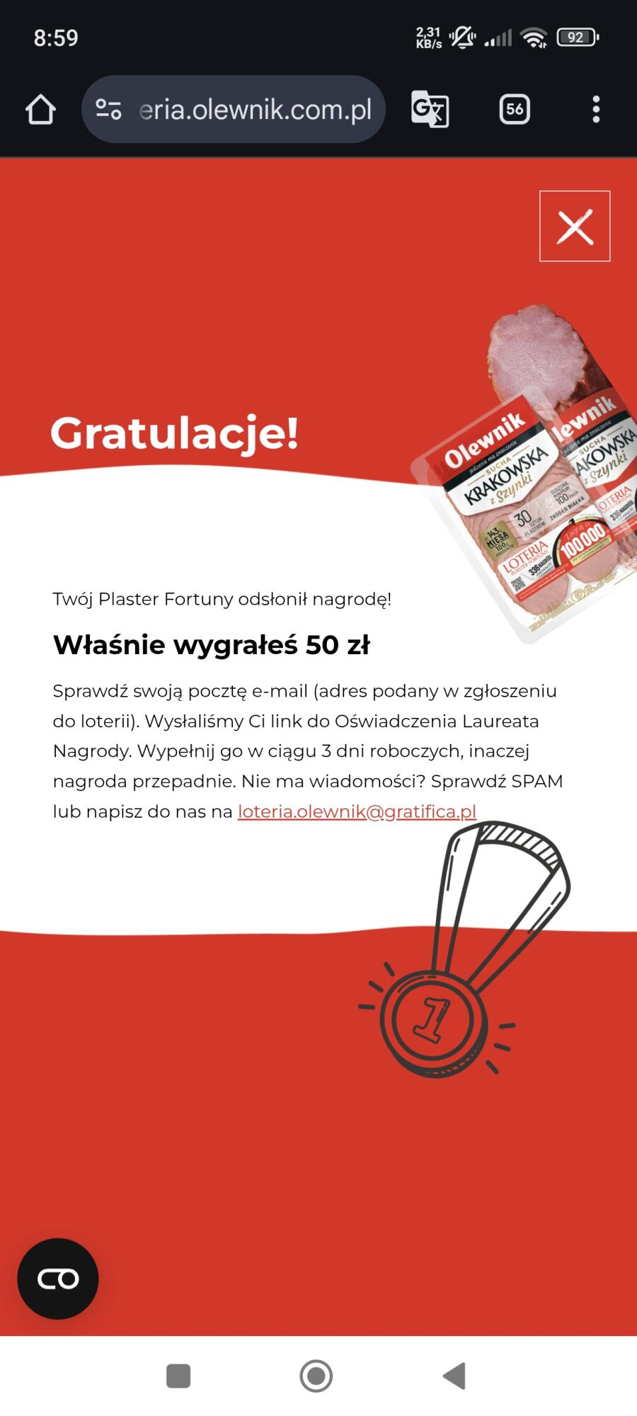 Pierwsza wygrana z loterii Foxy - blik 100 zł 😊