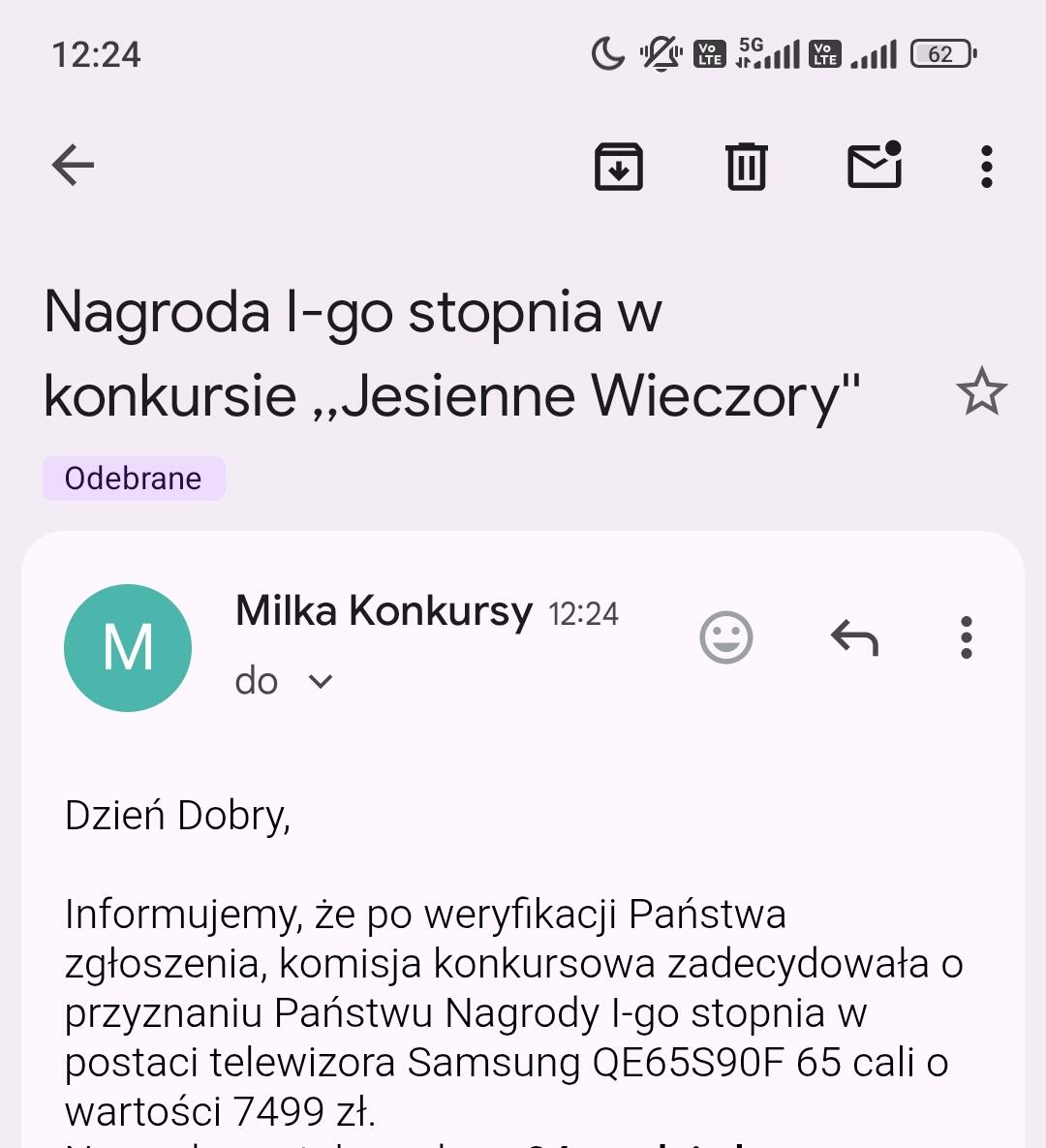 GRATULUJEMY!Twoje zgłoszenie zostało wylosowane, nagroda to: karta zakupowa KauflandAby ją otrzymać wypełnij formularz zwycięzcy w przeciągu 72h.,Pamiętaj, aby zachować paragon do 20 lutego 2026.Pozdrawiamy,Fortis - Organizator loterii