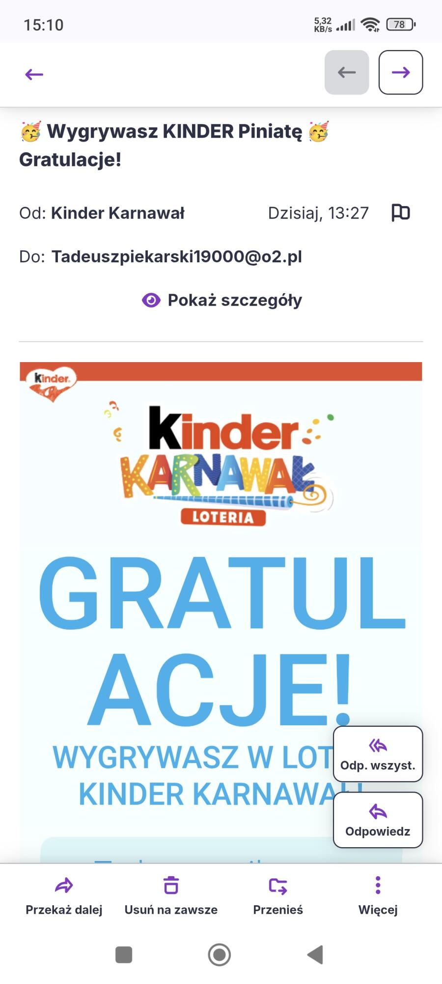 Nie ukrywam że liczyłam na Kinder i Pawełka bo wysłałam chore ilości paragonów a jak widać, ilość nie ma znaczenia