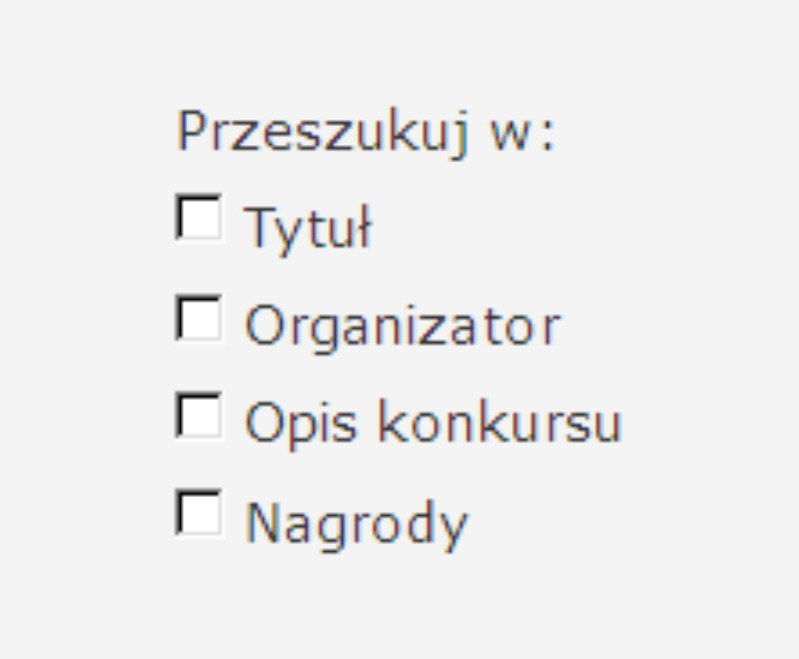 Jeśli nic nie zaznaczono to system przeszukuje tytuł, opis, nagrody, link (z linkiem różnie bywa, ale raczej w miarę ogarnia