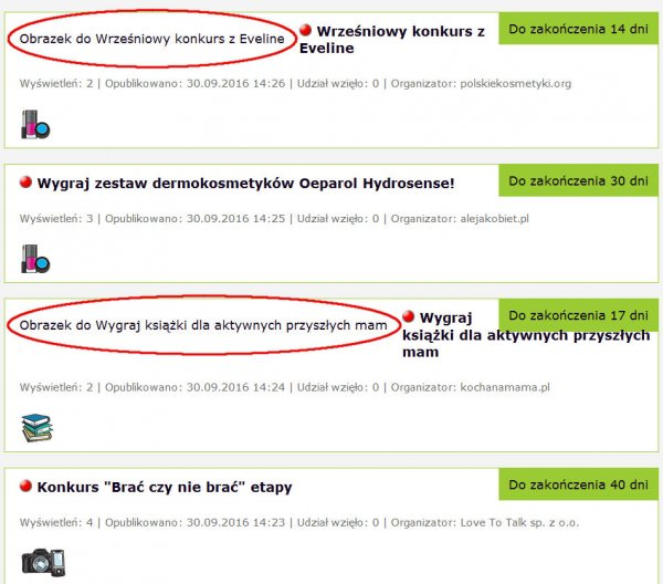 Konkursy promowane przez nas (czyli te ze strony głównej z wymiany barterowej)
