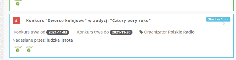Konkursy zaczynające się za jakiś czas i kończące się jutro są myląco podobne. Chodzi o niebieski napis. Nie pamiętam, jak było wcześniej, ale chyba te kończące się jutro też były czerwone?