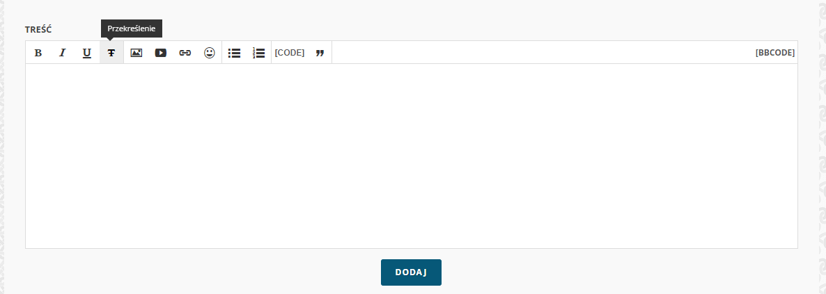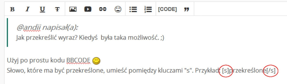 W polu do wpisywania wiadomości jest też skrót do tej funkcji - przekreślona literka T, czwarta z lewej.