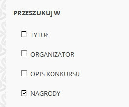 2. określamy obszar wyszukiwania (na przykład Organizator, Nagrody, Opis i tak dalej