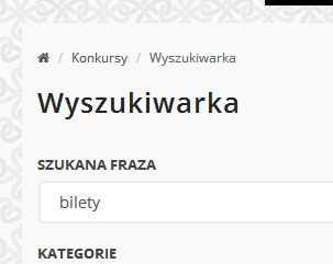 Pole tekstowe MUSISZ wypełnić! Co z tego, że zaznaczysz kategorie GDZIE ma szukać, skoro system nie wie, CZEGO szukać?! Próbuj także słów w innej formie, na przykład "wycieczka", bo wiadomo, że w opisie nagród nie piszą z reguły o kilku, tylko o jednej wycieczce