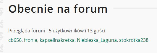 Może nie tak, że mi się to nie podoba, więc prawdopodobnie wybrałam zły wątek, ale gdy czasami zaglądam do "OBECNIE NA FORUM", to nigdy nie ma tam więcej niż 3 do 5 osób, a wcześniej, jeszcze kilka tygodni temu, bywało "w godzinach szczytu" nawet po 30/40 osób (użytkowników i gości). Od pewnego czasu nie było nawet 10 osób, co jest raczej niemożliwe, bo nawet nie wyświetlają się użytkownicy, którzy aktualnie coś komentują. Może to jakiś błąd?