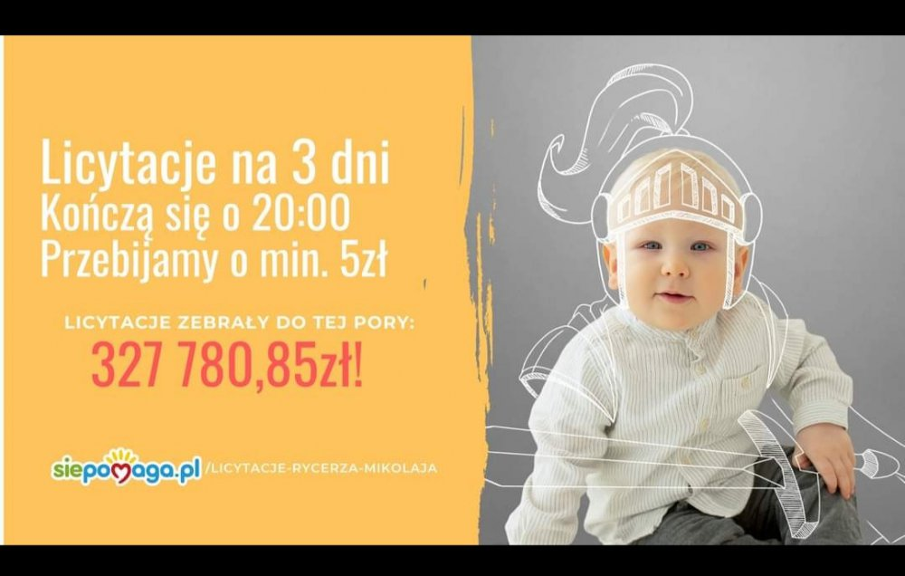 Bardzo proszę, kto może niech wrzuci do zbiórki chociaż złotówkę, albo wystawi aukcję aby pomóc rodzicom Mikołajka osiągnąć cel.