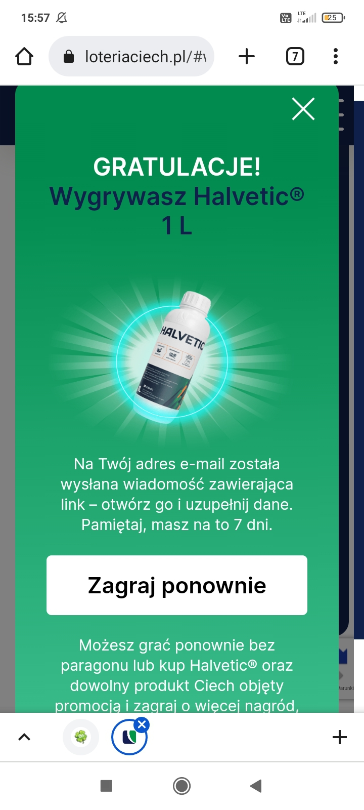 GRATULUJEMY!JESTES LAUREATEM NAGRODY II-GO STOPNIA W KONKURSIE "UDANE PRANIE". WYPELNIJ W CIAGU 7 DNI FORMULARZ DLA LAUREATA NA STRONIE:
