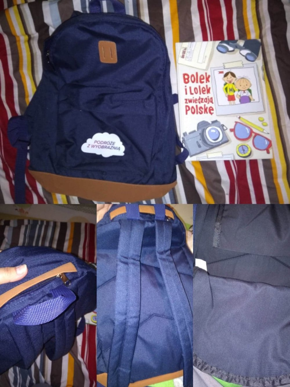 Bambino plecak i książka - plecak fajny, lekko usztywnione plecy, podszewka, mała kieszonka na telefon lub drobne - plus za brak napisu Bambino