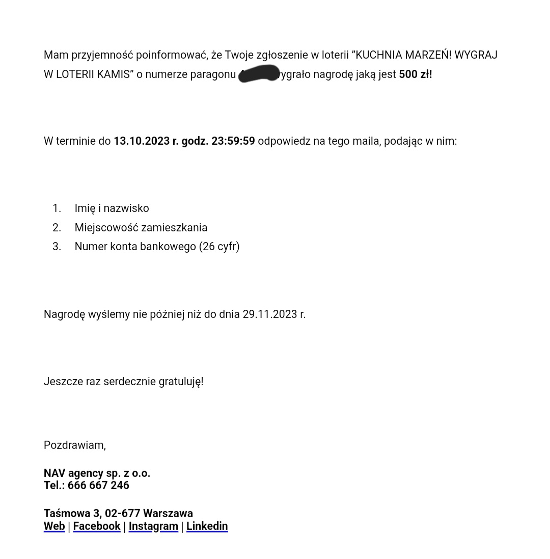 P.s dopiero dzisiaj jak odczytałam e-maila to zorientowałam się, że gotówkę też można tam wygrać