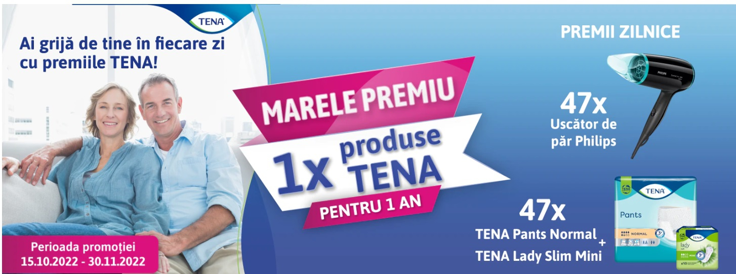 Wystarczy kupić 1 produkt Tena. Do wygrania 1 x roczny zapas Tena, 47 x suszarka, 47 x mniejszy zestaw produktów Tena.