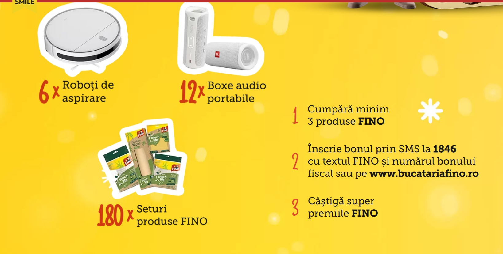 Zakup 3 produktów marki Fino, u nas nazywają się Jan Niezbędny i chyba nie robią konkursów w Polsce? Do wygrania 6 robotów sprzątających po ok 1500 zł, 12 głośników po ok. 500 zł, i 180 zestawów produktów.