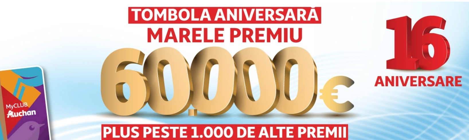 Na urodziny Auchan za zakupy z kartą MyClub: 1 x ok. 280000 zł, 16 x ok. 4600 zł, 160 x ok. 460 zł, 1.600 x ok. 46 zł.