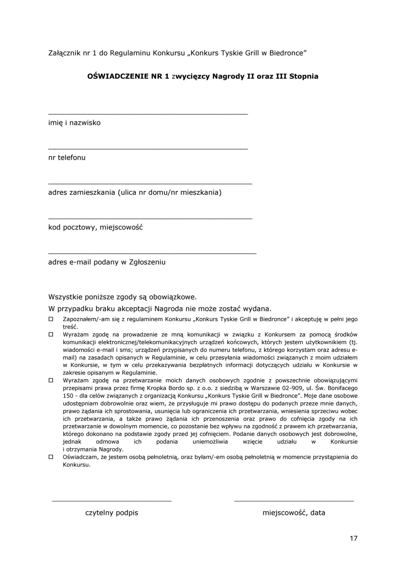 sprzeciwu wobec przetwarzania danych osobowych. Posiadasz prawo wniesienia skargi do Prezesa Urzędu