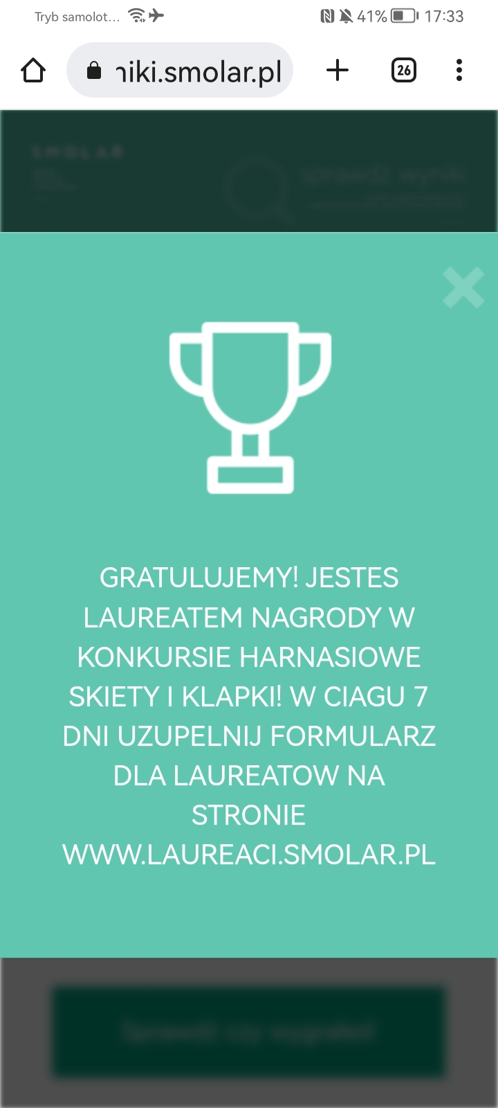 Wg regulaminu info o wygranej do 10 dni roboczych od zakończenia etapu Wyświetl w wątku >>