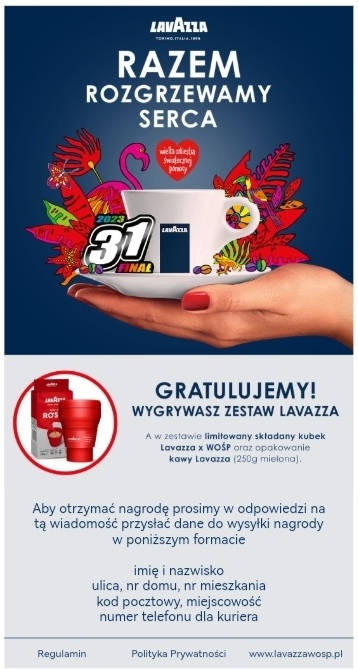 Kubek wielorazowego użytku i kawa Lavazza - Konkurs "Razem rozgrzewamy serca"/ UPS, bez żadnego info o nadaniu i dostarczeniu, brak dokumentów zwrotnych / Wyświetl w wątku >>