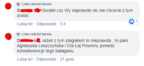 Wiem, że to już ,,starawy" temat, ale są jakieś nowe informacje ws. Góralek? Wciąż mnie niesamowicie mierzi ta sytuacja. A pan D.L. ma już mocne rozdwojenie jaźni w komentarzach i jeszcze obrywa się osobom, które zasadnie wskazały plagiat.