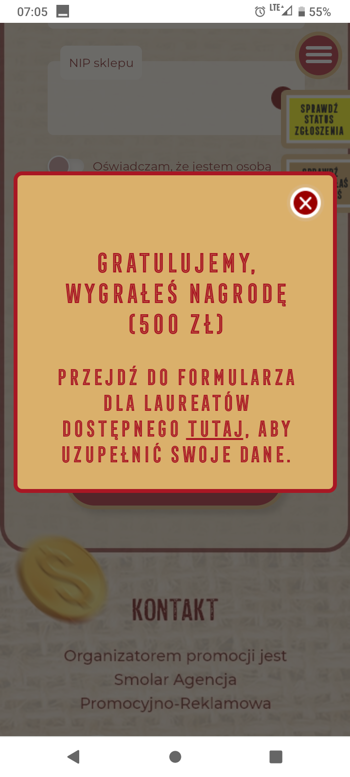 Podobno po około 4-5 dniach przychodzi mail - już z nagrodą