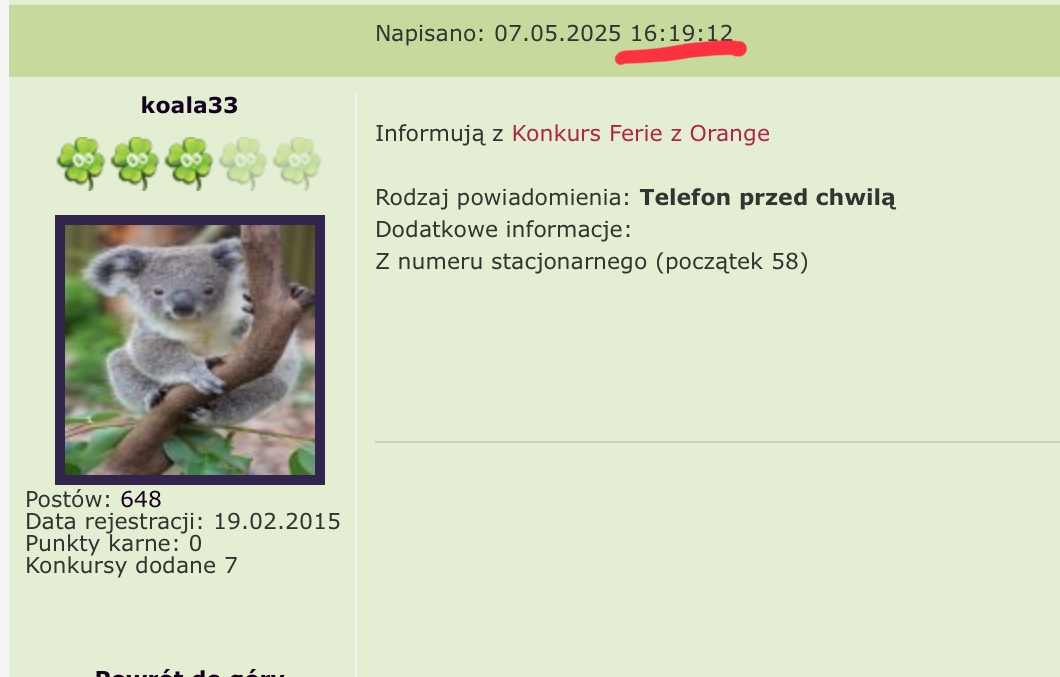 Powiadomienie o wygranej jest mailowe Wyświetl w wątku >>