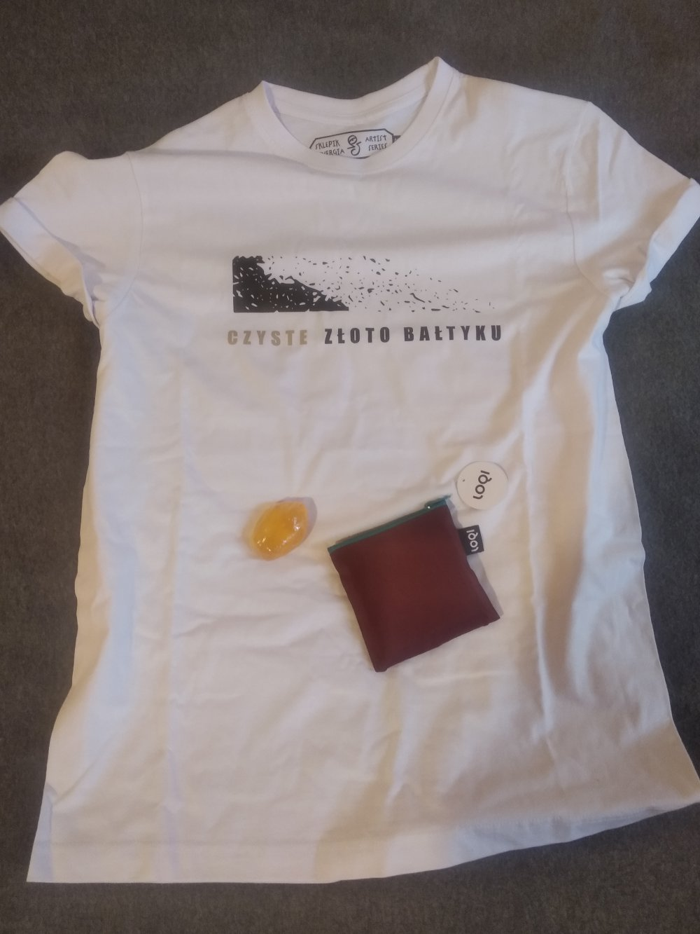 Toya, Złoto Bałtyku. W pokrowcu torba na zakupy. Mydełko bursztynowe zawinięte w stretch rozwala system