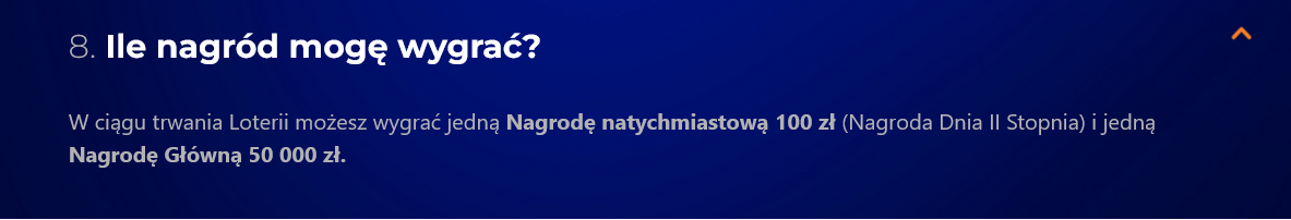 A regulamin w ogóle jest niespójny, bo w jednym miejscu jest napisane, że: Laureat nagrody III stopnia może otrzymać również nagrodę II albo I stopnia. A w innym: Jeden Uczestnik może uzyskać prawo do maksymalnie jednej Nagrody w Konkursie, niezależnie od liczby zarejestrowanych Zgłoszeń. Wyświetl w wątku >>