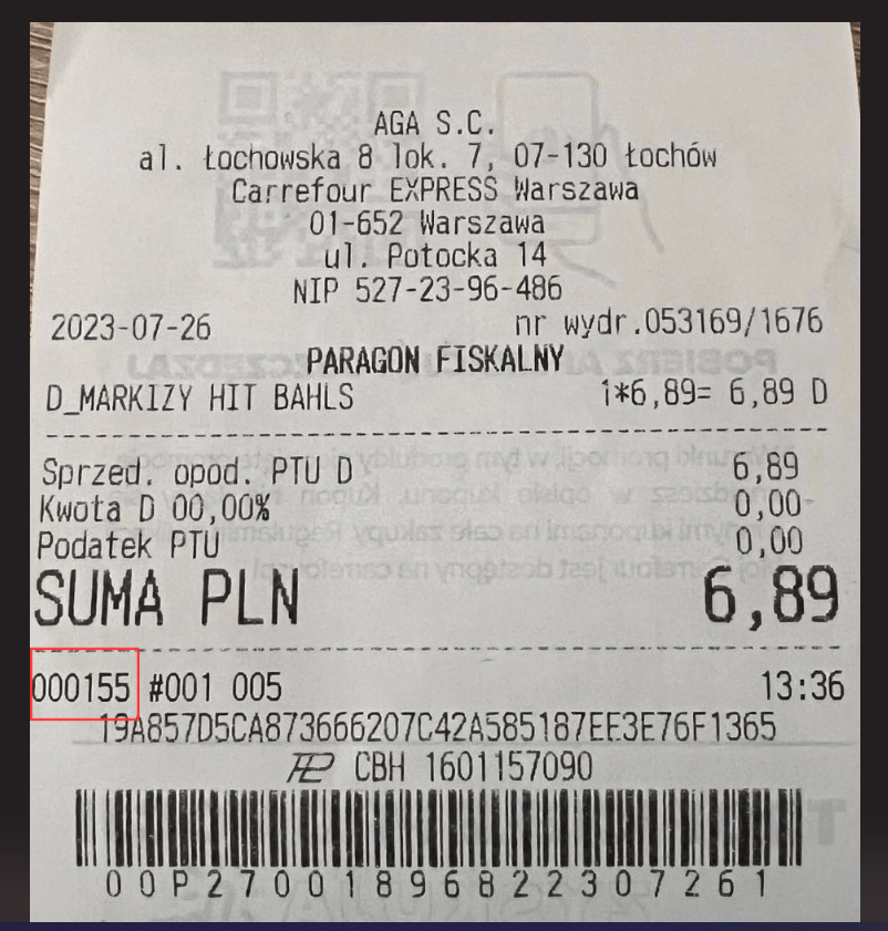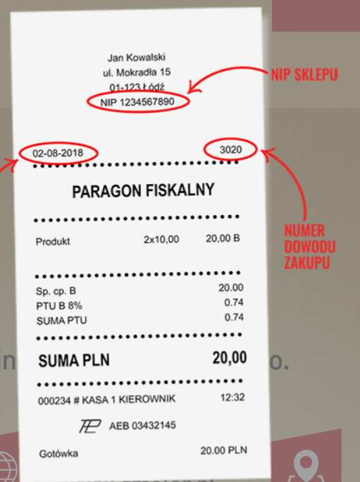 Często obok pola do wpisania nr paragonu jest pytajnik "?" z podpowiedzią.