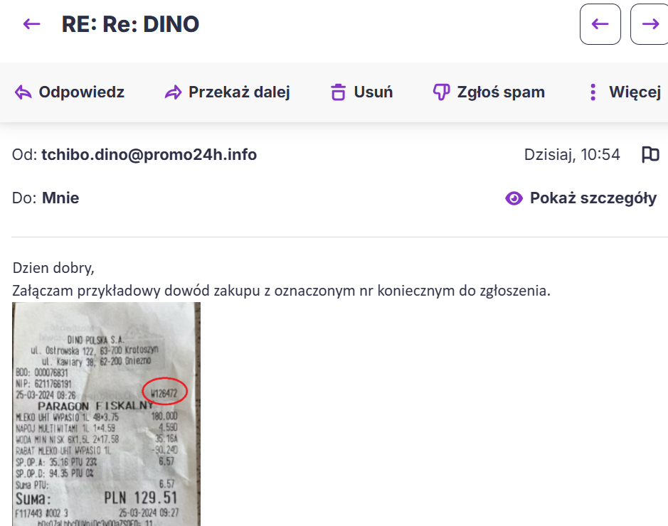Mi odpisali konkretnie wskazując na moim paragonie poprawny numer, nie na przykładzie. I podkreślili ten numer górny;) Wyświetl w wątku >>