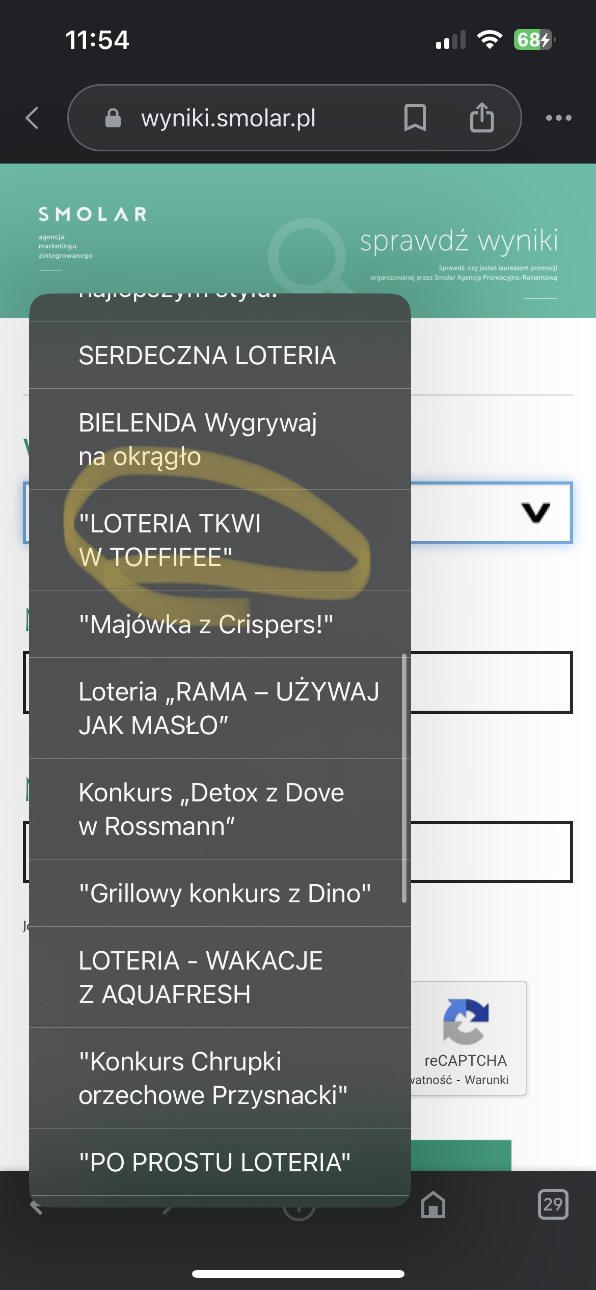A ja mam pytanie odnośnie loterii Smolara. Była loteria Toffifee nie tak dawno temu, ale na stronie smolara nie ma wyników. Czy jak są loterie to oni nie umieszczają wyników czy jak to jest? emotka Wyświetl w wątku >>