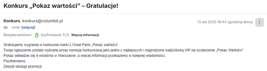 Może ktoś chciałby odkupić? Bilet na Pokaz Wartości z L’Oreal Paris. Chętnie również wymienię na bony do Lidla, Biedronki, Dino, Decathlon, Energylandii, Suntago lub.. propozycje priv 😊 Wyświetl w wątku >>