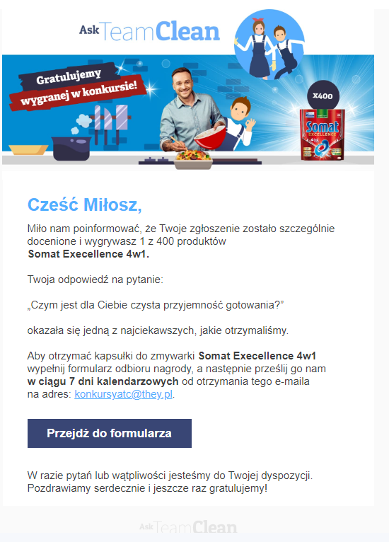 żebym to ja miała takie powodzenie w innych konkursach... Wyświetl w wątku >>