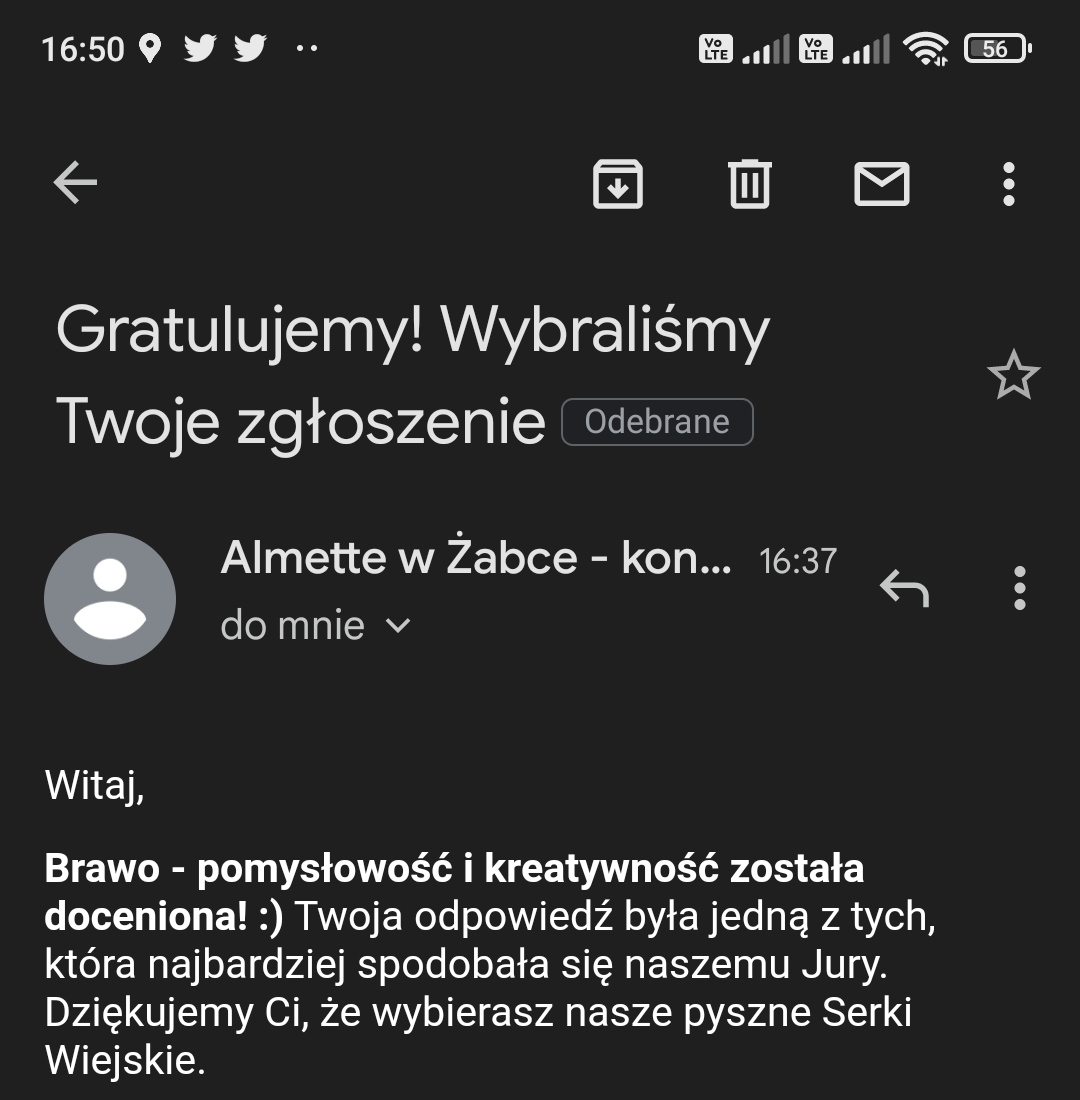 To mi na Gmailu pokazuje się powiadomienie, że nie otworzyli jeszcze nawet mojego maila z orzeczeniem laureata z 21.06 emotka Wyświetl w wątku >>