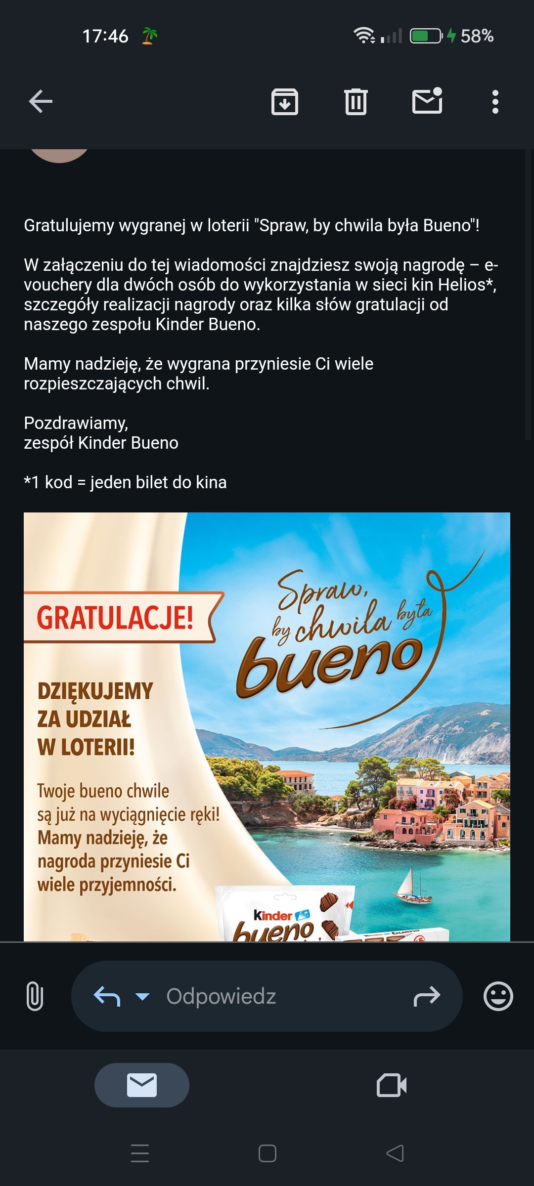 Wymienię 1 kod do kina Helios na kod do pyszne pl. 🔥 Wyświetl w wątku >>