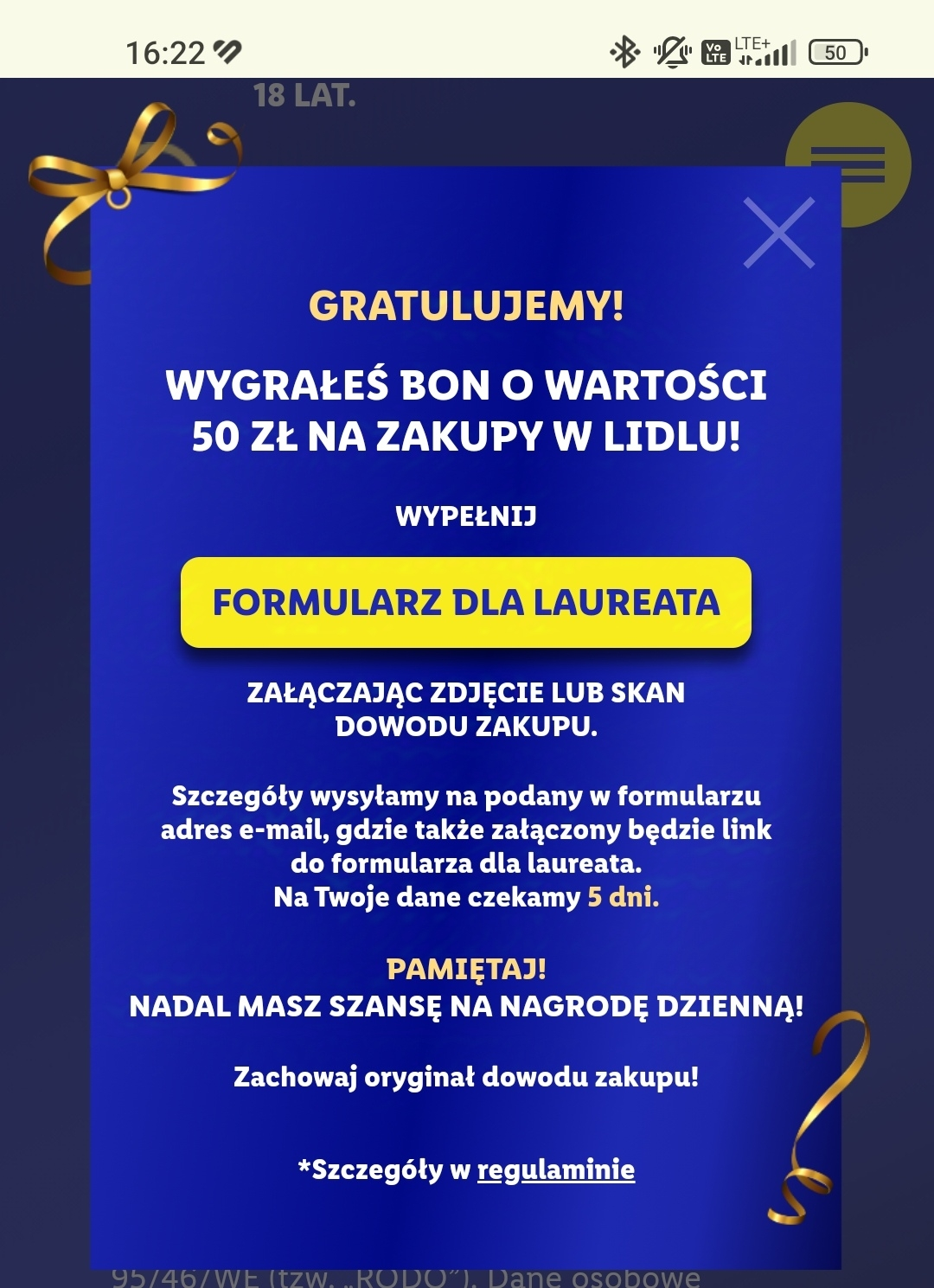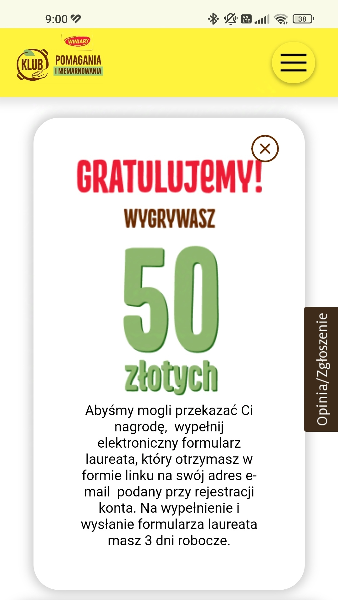 Kwestia szczęścia jak zawsze. Ja wbiłam jeden paragon, na dodatek znaleziony na parkingu i od razu 50 zł. Ale za to z Coli z Biedronki już chyba 5 czy 6 i nic. Wyświetl w wątku >>