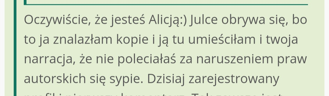 Wczoraj rozmawiałałam na temat plagiatów tylko z jedną osobą i dzięki dialogowi i chociaż wiem kto działał na moją szkodę.