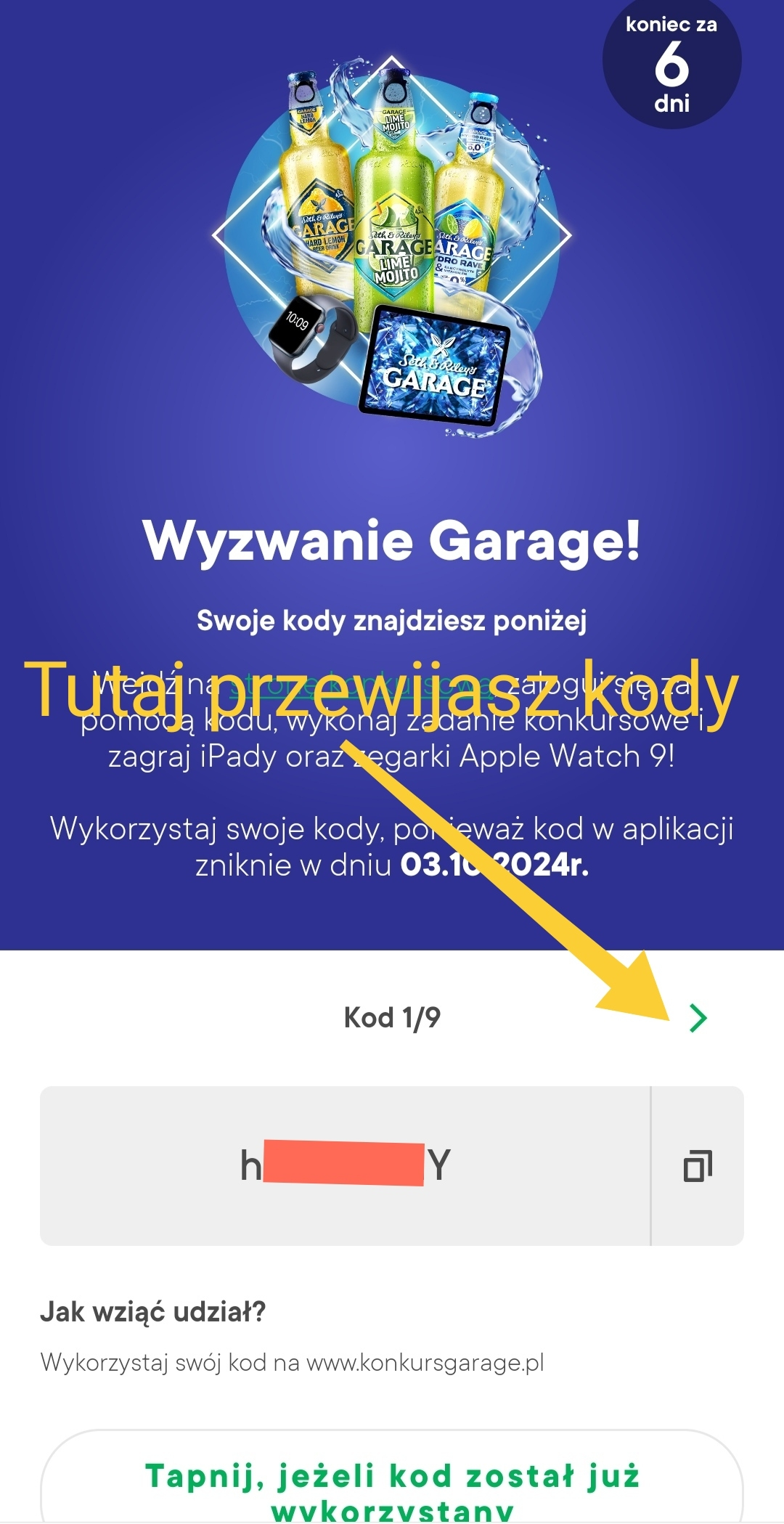Jeśli kodów jest więcej niż 1 to zgodnie z poniższym obrazkiem będziesz mógł je przewijać: