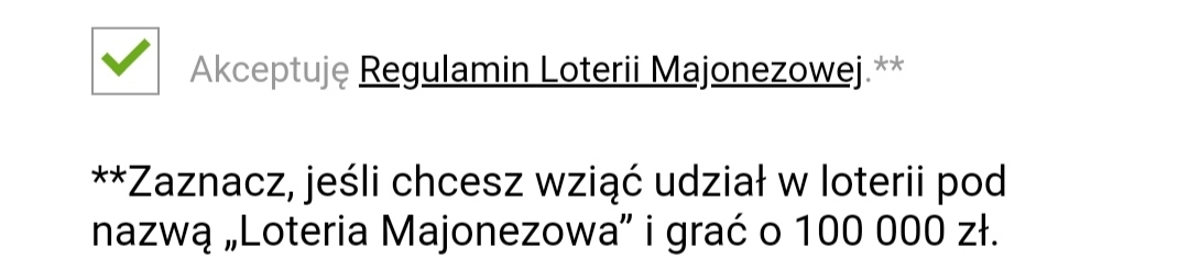 A Twój udział w loterii majonezowej powinien być normalnie brany pod uwagę.