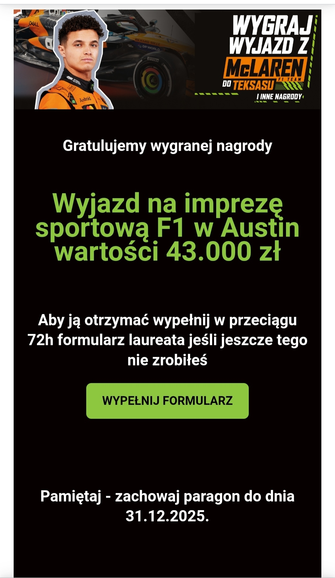 PS. W okresie wyścigu może nastąpić przerwa w dostawie paragonów.